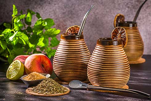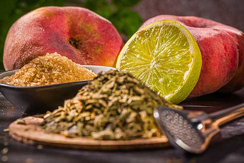 Wasser zum kochen bringen und mit Peach-Sirup und Limettensaft verrühren. Mate Tea in stylische Gläser füllen und mit dem Aufguß auffüllen. Einige Minuten ziehen lassen und heiß genießen. Wenn Sie eine kalte Version servieren möchten, dann das gekochte Wasser in Krüge füllen, Peach-Sirup und Limettensaft dazugeben und mit dem Mate Tea vermengen. Das Getränk kühlstellen und mit einem Eiswürfel und einer gedörrten Limettenscheibe bereitstellen.